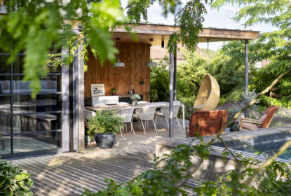„Perfektní práce se dřevem, výrazný dubový trám u ohniště, vkusně umístěné jezero, skvěle vyřešená trvalková výsadba i jednoduchá dřevěná kuchyně – to všechno vytváří prostor, ve kterém se člověk chce zdržet“, říká o zahradě studentky Gabriely Ferdinand Leffler.