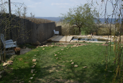 Naša záhrada bola pôvodne jabloňový sad vysadený pred päťdesiatimi rokmi. Posledných 10 rokov pred naším príchodom boli stromy ponechané bez starostlivosti a prerástli do malej džungle. Postupne po malých krokoch sme začali záhradu upravovať a robiť si v nej miesta pre pestovanie kvetov, malých záhonov a pre hru dieťaťa. Pred dvomi rokmi výmena plota a rekonštrukcia terasy otvorila v záhrade nové miesta a uvažovali sme nad jej novými funkciami, keďže naše potreby sa rokmi zmenili. Ferdinandove realizácie sme spoznávali cez články v časopisoch a prvú knihu Žijte ve své zahradě. Inšpirovali nás videá, cez ktoré sme sa dostali aj ku kurzu a ten nám pomohol pochopiť čo všetko sa dá v záhrade prežiť.