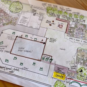 Zásadní bod je ten, že i na malé zahradě s plochou 400 m2 lze realizovat skoro vše, co bychom si přáli. Máme zde v návrhu velkou terasu, ohniště, čítárnu, kůlnu, obrovský dřevník, garáž pro motorku, stání pro auto, malinké workoutové hřiště, venkovní sprchu pro osvěžení, 5 velkých záhonů na zeleninu a bylinky, kompostér, ovocné keře, několik stromů, 3 vodní prvky a hoooodně nádherných rozkvetlých trvalkových záhonů. Mimochodem ty bych nikdy sama nebyla schopna navrhnout a nyní už se nemohu dočkat, až je budu moci začít sázet. Než jsem poznala Ferdinandovo učení, tak jsem si myslela, že na takové zahradě budu moci mít jen terasu a trávník, že nic jiného se tam nemůže vejít.