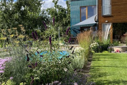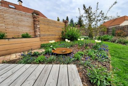 Na začátku jsem si říkala, že už mám dost nastudováno a málo co mě překvapí, ale kurz byl pro mě skvělý v tom, že mi pomohl si z mých roztěkaných nápadů vytvořit jeden kompaktní celek. Velice příjemným překvapením v kurzu byly trvalky a nabídka jejich záhonů. Ze začátku jsem si vůbec nebyla jistá, jak všechny rostliny vysadit, aby měly nějaký tvar. Záhony jsem si objednala, vysadila a teď mi dělají radost každý den.