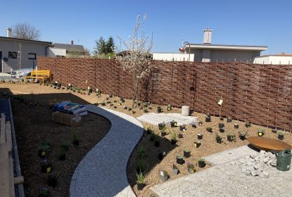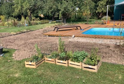 Zásadní však je, že mám ucelený koncept celé naší zahrady. Nejsou to jen vize v mojí hlavě, ale je to na papíře. A to mi přináší ohromnou úlevu, jasnost, a tím i elán do realizace. Budování na základě jasného plánu je pro mě úplně nové, ale vše jde překvapivě snadno a rychle. A přitom pokračuji jen v tom, co nás naučil kurz. Plním drobné úkoly, jeden za druhým – bagr, štěrk, kompost, mulč. Mám z toho procesu obrovskou radost, protože se můj obrázek postupně mění v realitu.