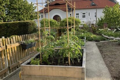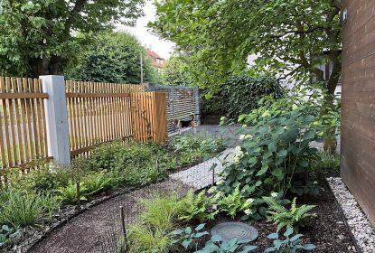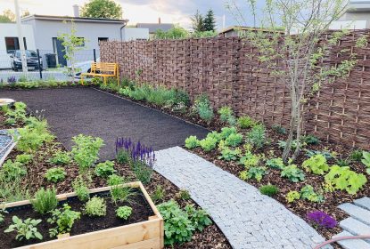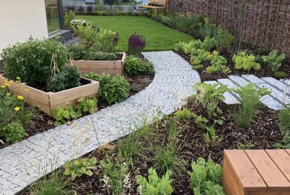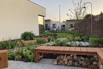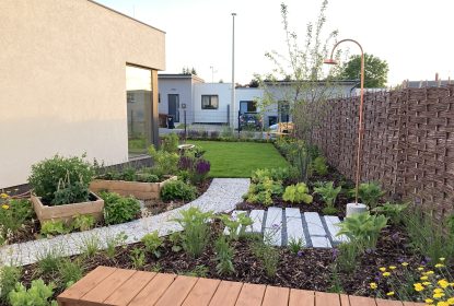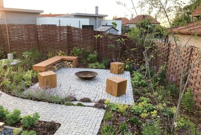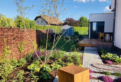 Kurz Žijte ve své zahradě jsem si koupila před rokem, v době, kdy jsem si chtěla trochu odpočinout od psaní diplomové práce. Od začátku mě kurz tak zaujal, že se stal prioritou. Díky kurzu jsem se začala na naši zahradu dívat “novýma očima”. Žijeme v jižních Čechách v městské zástavbě na okraji města. Naše zahrada není moc velká, jen 390 m2. Je to zahrada, ve které žiji celý život. Dům postavil můj pradědeček. A tak bylo těžké začít zahradu vnímat nezaujatě. Rozdělení zahrady na zelené pokoje mi hodně pomohlo. S manželem jsme díky kurzu pomalu začali zahradu přetvářet. Začali jsme atriem, kam jsme přinesli vodní prvek, trvalkové záhony a trochu i jedlé zahrady do velkých truhlíků. Je to teď taková zelená kvetoucí oáza, kde si moc rádi dáváme japonský čaj. Dalším projektem byly vyvýšené záhony a mlatový povrch kolem nich. Já mám odvahu přinášet nejrůznější nápady, manžel to pak přenese do reality a společně se na tom pak podílíme.