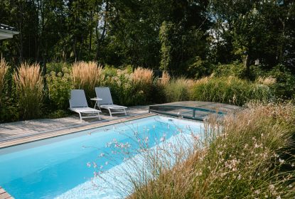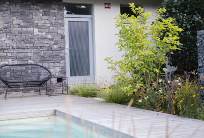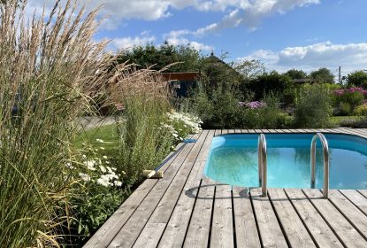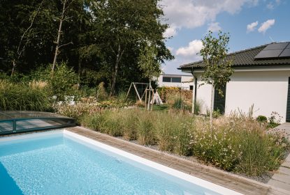 Brzy jsem zjistil, že kurz nebude dobrý jenom na kytky, ale bude toho víc. Původně jsem měl vymyšleno, že bazén bude zastřešený, ale v kurzu sem dostal myšlenku, že zastřešení nebude a že bude obalený v zeleni. To hodnotím zpětně jako ten největší přínos kurzu pro naší zahradu.