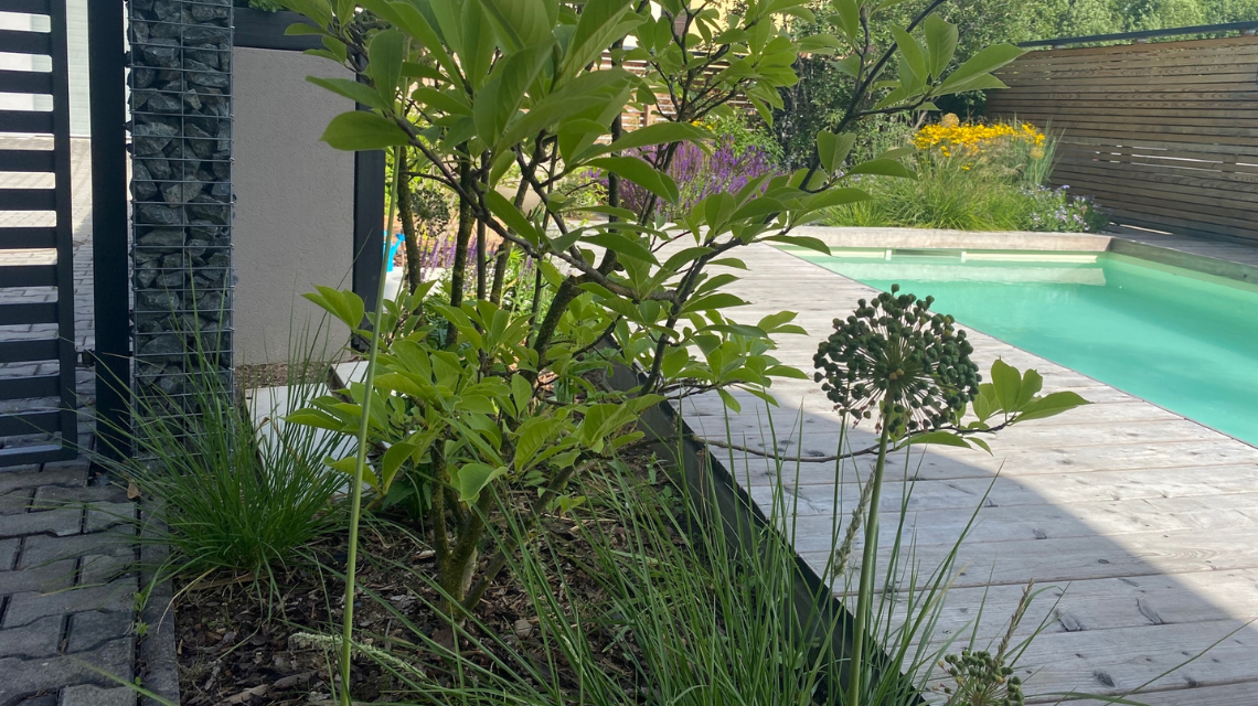 I taková zjištění naši studenti mají. A to Pavol původně ani nechtěl kurzy z rodiny Žijte ve své zahradě pořizovat. Sledoval nás na Flera TV, četl Ferdinandovy knihy, pro inspiraci si chodil do fotek z realizací ateliéru Flera. Dnes je pro něj přemýšlení o zahradě a zvelebování jeho malého pozemku ta největší radost. Na poměrně malé zahradě se nebál velkých prvků, jako je bazén s dřevěným molem a několik velkorysých míst pro posezení.